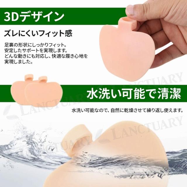 立体的な3Dデザインは、足裏の形状にフィットし、歩行時のズレを防ぎます。