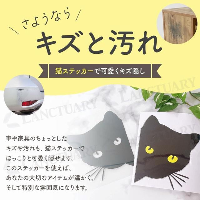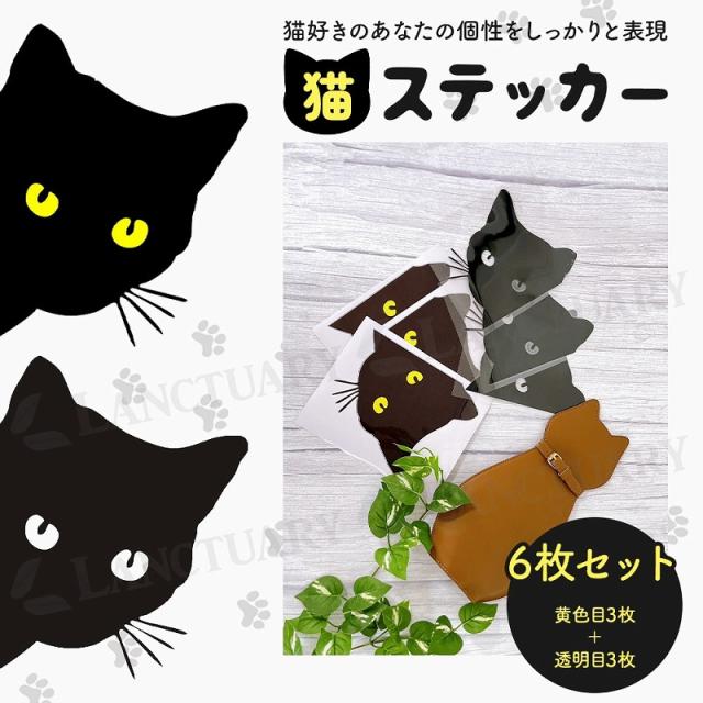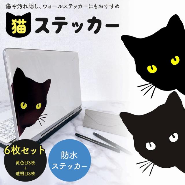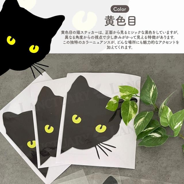| 主な仕様 | 商品名: 猫ステッカー6枚セット デザイン: 黒猫が覗いているカッティング セット内容: 黄色目3枚、透明目3枚 サイズ: 15×18cm |