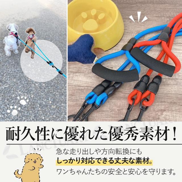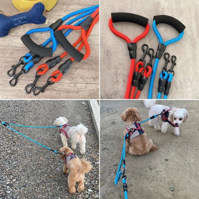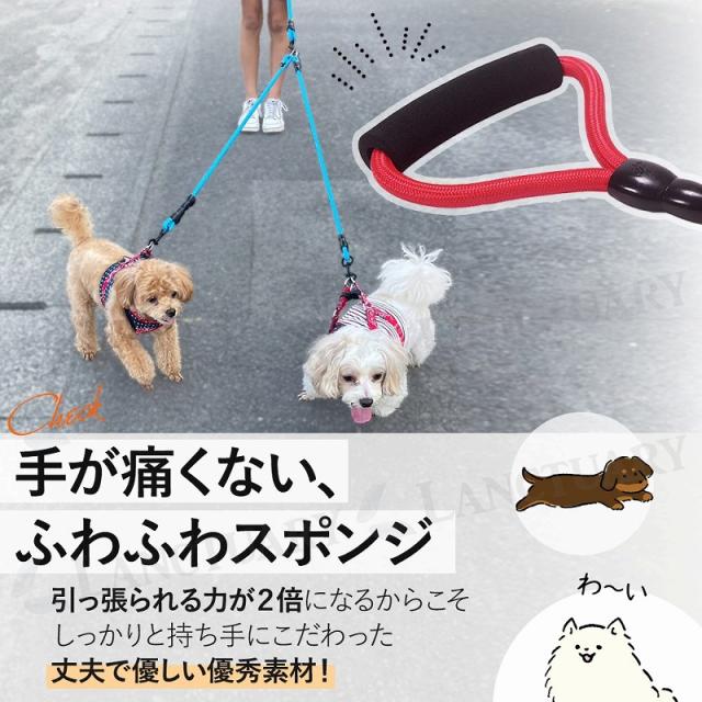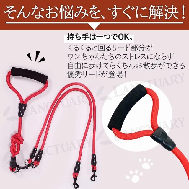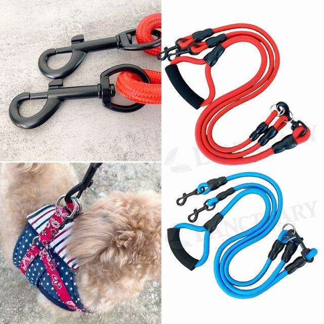 送料無料 犬用 リード 散歩 ダブル 多頭 丈夫 持ちやすい 軽量