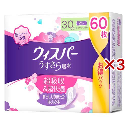 ウィスパー うすさら吸水 30cc 吸水ケア 吸水ナプキン 大容量(60枚入×3セット)[尿とりパッド]