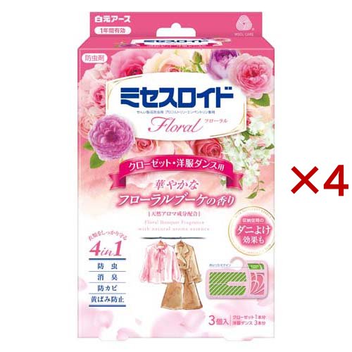 ミセスロイド フローラル クローゼット・洋服ダンス用 1年防虫 フローラル ブーケ(3個入×4セット)[虫除け その他]