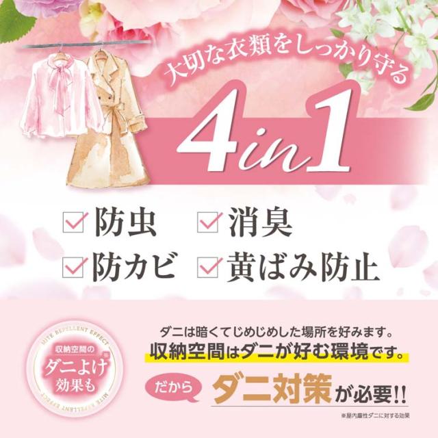 防虫・消臭・芳香・防カビ・黄ばみ防止・防ダニ効果付