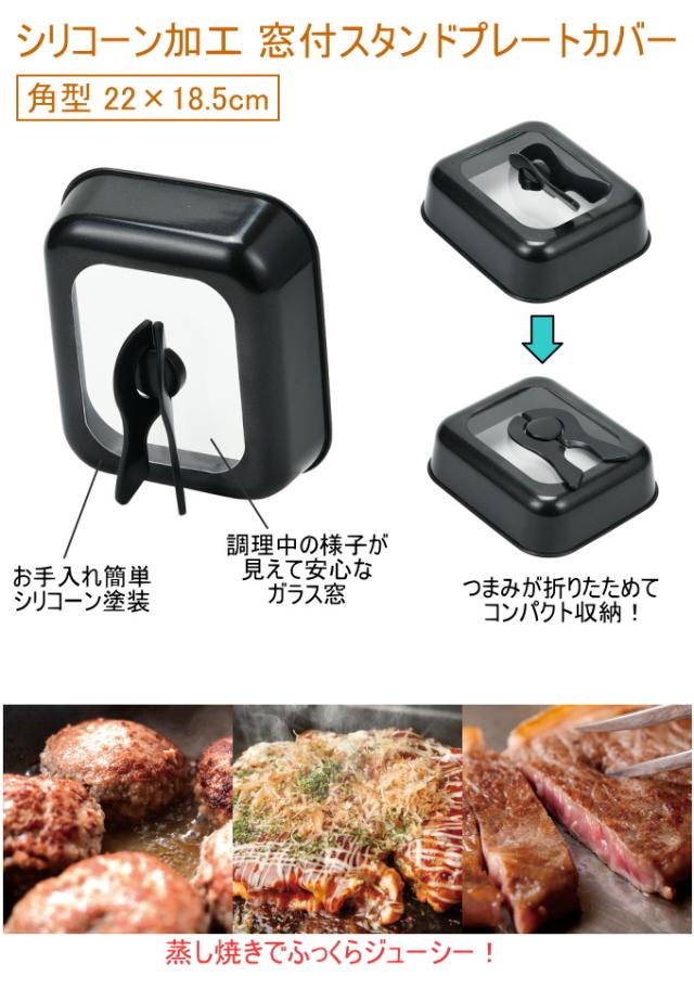 ハンディ シリコーン加工窓付スタンドプレートカバー 角型 22×18.5cm HB-5415 角型 カバー 調理器具 蒸し焼き