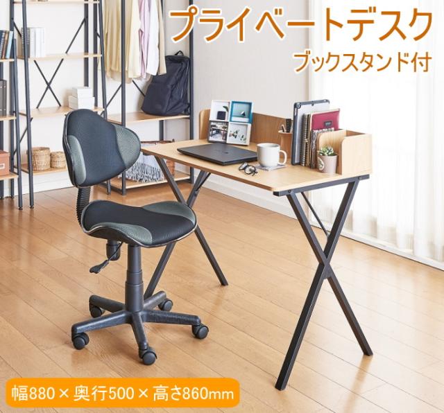 プライベートデスク ブックスタンド付 N-7961 机 テーブル 組立式 ワークデスク 木目調 ナチュラル シンプル