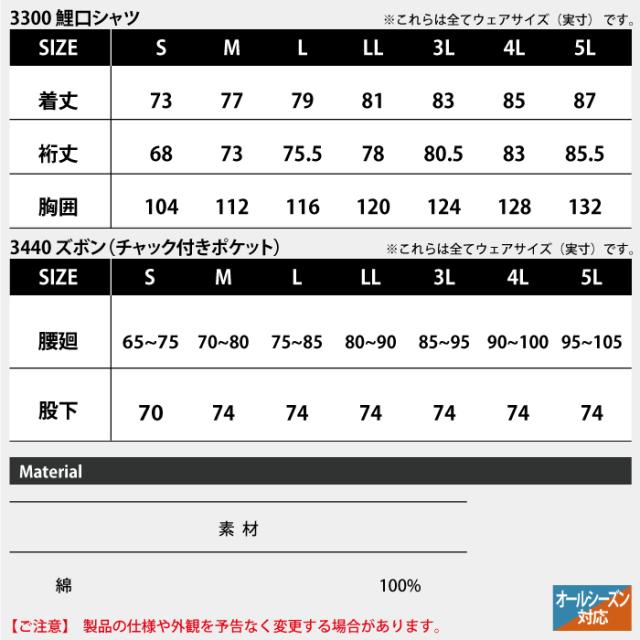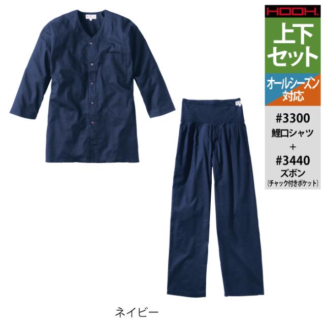 村上被服 HOOH 鳳凰 作業服 上下セット 3300 鯉口シャツS-3L と 3440 ズボン(チャック付きポケット) S-3L 作業着 作業ズボン