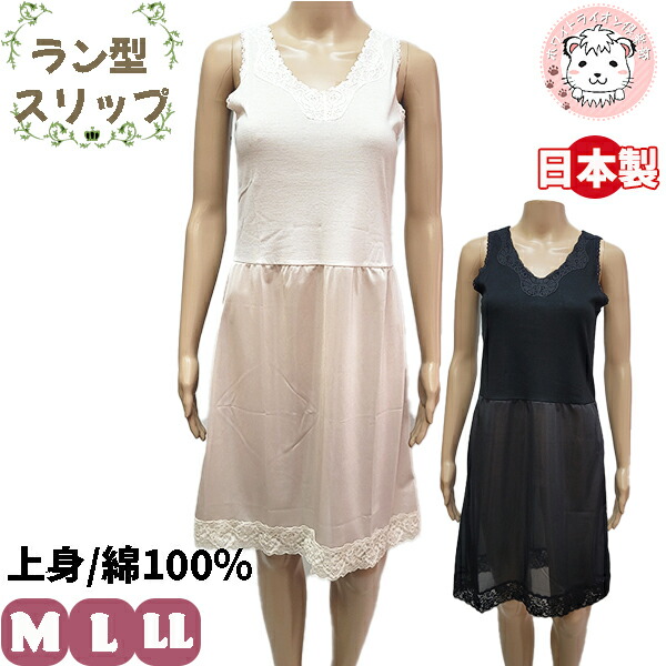 ラン型 切替スリップ シュミーズ ペチコート ランジェリー 90cm丈 日本製 M90/L90/LL90 | スリップ ノースリーブ シミーズ レディース 透け防止