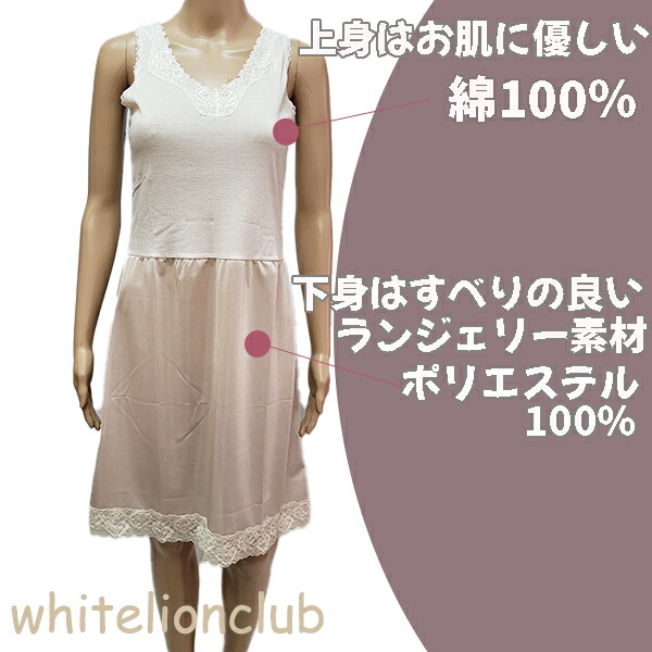 切り替えスリップ ペティコート 綿100% 袖なしスリップ