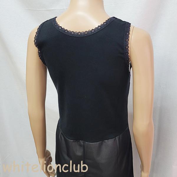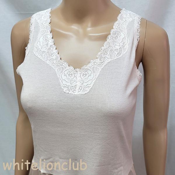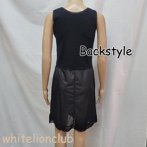 すっきりした着心地のラン型切替スリップ。上身は綿100%の心地よいナチュラル感。下身はすべりの良いポリエステル。衿部分はレースが直接肌に当たらない仕様です。スリップ付きのノースリーブインナー。インナーとペチコートがこれ1枚でOK!!スカートやワンピースのインナーにおススメです。