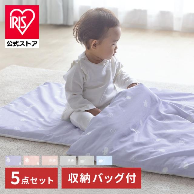 ベビー布団セット 組布団セット 布団・カバーセット お昼寝布団 5点セット KFS-K5S 全6色 赤ちゃん用 かわいい 洗濯機OK 入園準備 5点セット 収納バッグ付き ギフト 送料無料