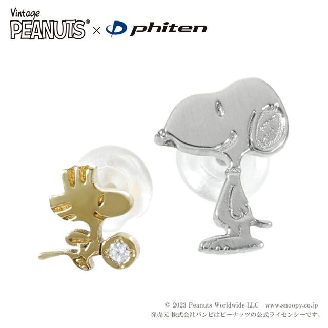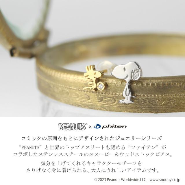 ファイテン コラボ スヌーピー ウッドストック アシンメトリー ピアス 2P 両耳用 ステンレススチール ゴールド ジルコニア 公式 phiten PEANUTS
