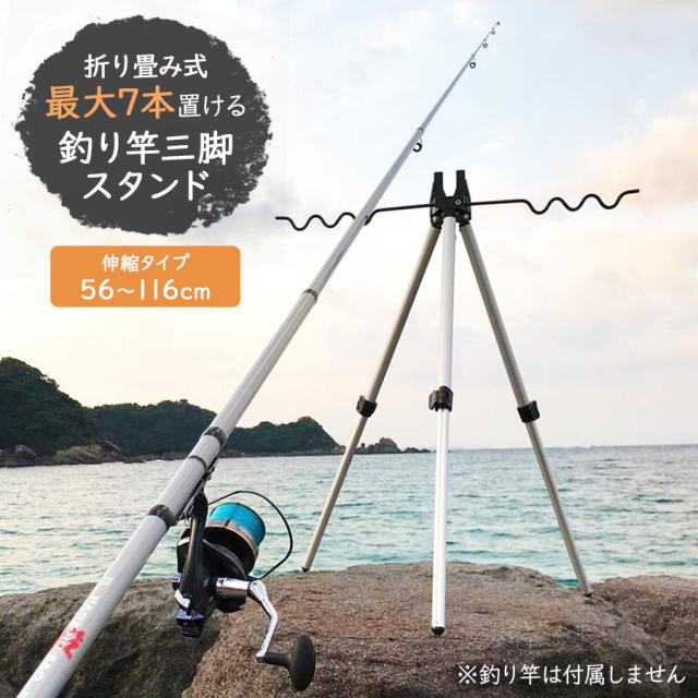 釣り竿ホルダー 三脚スタンド 折り畳み 伸縮 56~116cm 釣り竿立て 竿立て 釣り竿 釣り竿掛け ロッドホルダー ロッドスタンド 釣り竿スタンド 送料無料 レビューを書いて保証期間延長