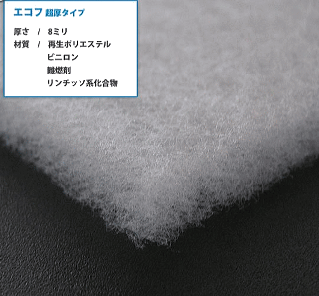 | エコフ 厚デカはフィルターの厚さが従来品(レギャラータイプ)の約4倍でホコリや油汚れも強力に キャッチします。 |