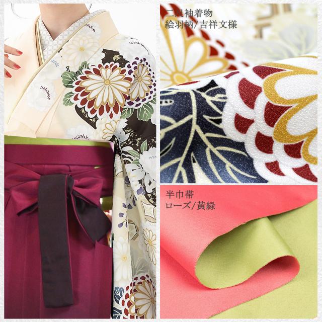 二尺袖,袴,半巾帯,二尺袖長襦袢半衿付,無地草履,足袋,腰紐4本,伊達締め2本,帯板,衿芯の15点フルセット