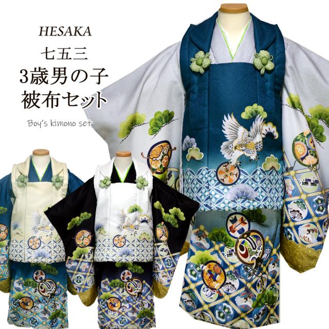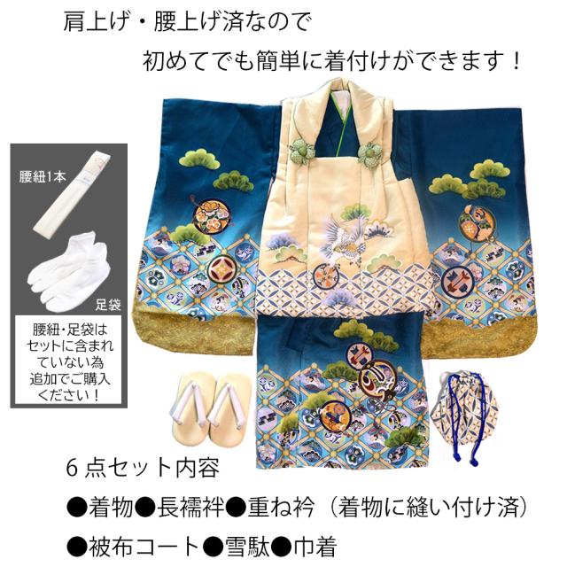 七五三 着物 男の子 絵羽柄 3歳 6点 被布 セット 三歳 被布 着物 レトロ 古典柄 【 被布 セット 男の子 子供