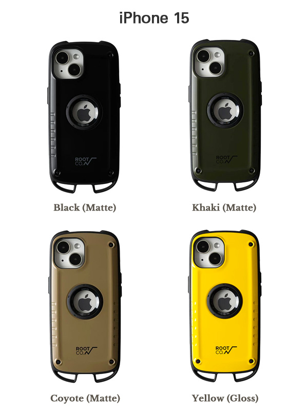 ROOT CO ルートコー iPhone 15シリーズ 耐衝撃 ●送料無料 機能・耐衝撃・デザインの3点を兼ね備え、アウトドアテイストを取り入れたデザイン。スタイリッシュな仕上がりに。