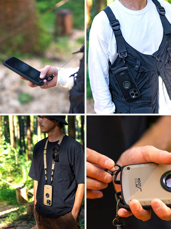 バックパックやショルダーバッグ・ベルトループ等にiPhoneをそのまま装着、登山やアウトドア時の落下防止が可能です。