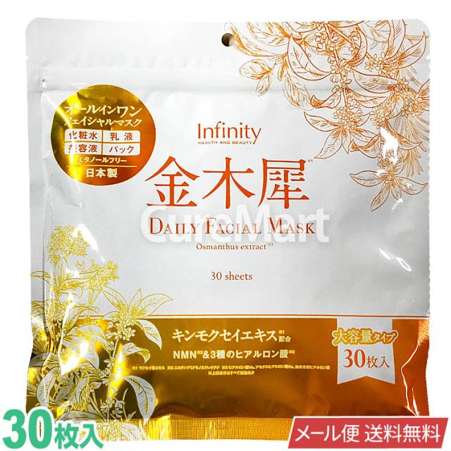 金木犀 デイリーフェイシャルマスク 30枚入 日本製 infinity メール便 送料無料 フェイスマスク キンンモクセイ NMN ニコチンアミド サーチュイン オールインワン シートマスク フェイスパック エイジングケア きんもくせい ハリ 保湿 インフィニティー