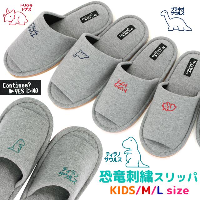 恐竜 スリッパ KIDS M L おしゃれ キャラクター ルームスリッパ ルームシューズ 滑りにくい 静音設計 ファミリースリッパ 恐竜刺繍 ティラノサウルス トリケラトプス ブラキオサウルス agesugi_snk
