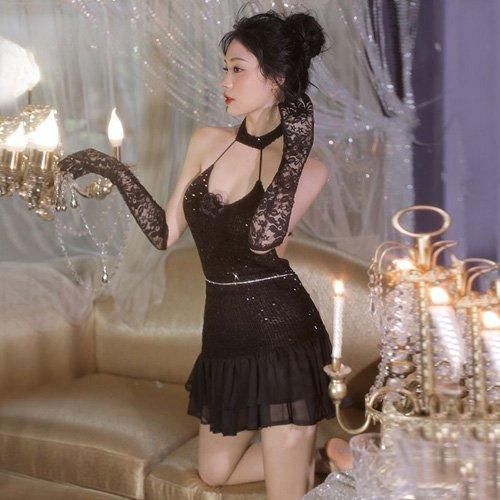 【グラシア】 コスプレ 衣装 コスチューム 仮装 セクシー キュート コス ボディコンワンピース スパンコール 刺繍 ボディコン ブラック フリーサイズ