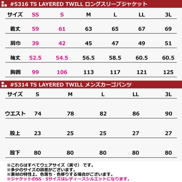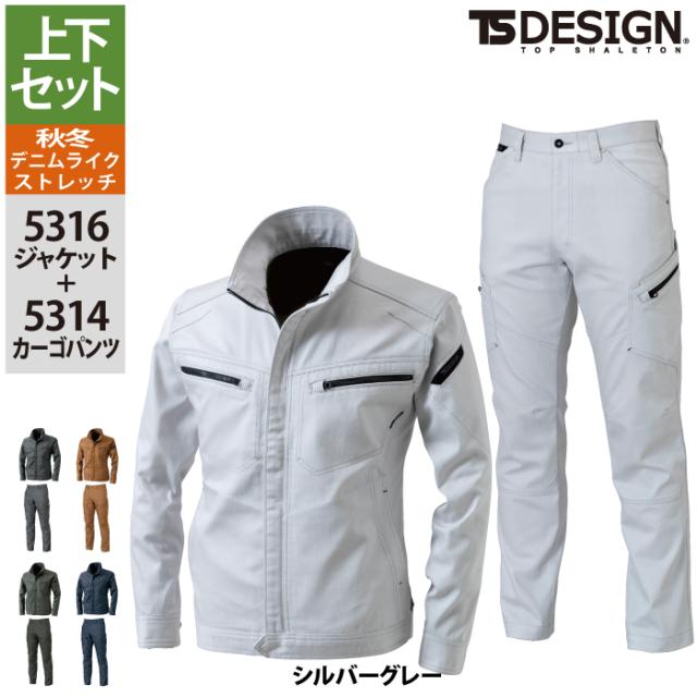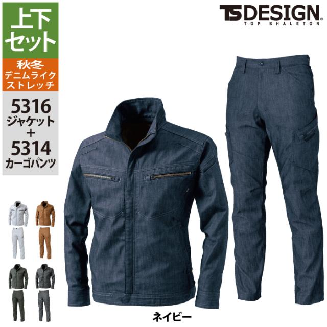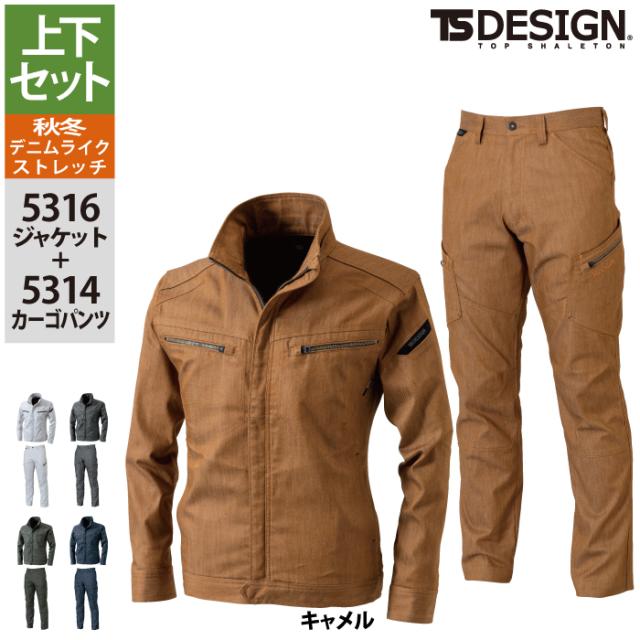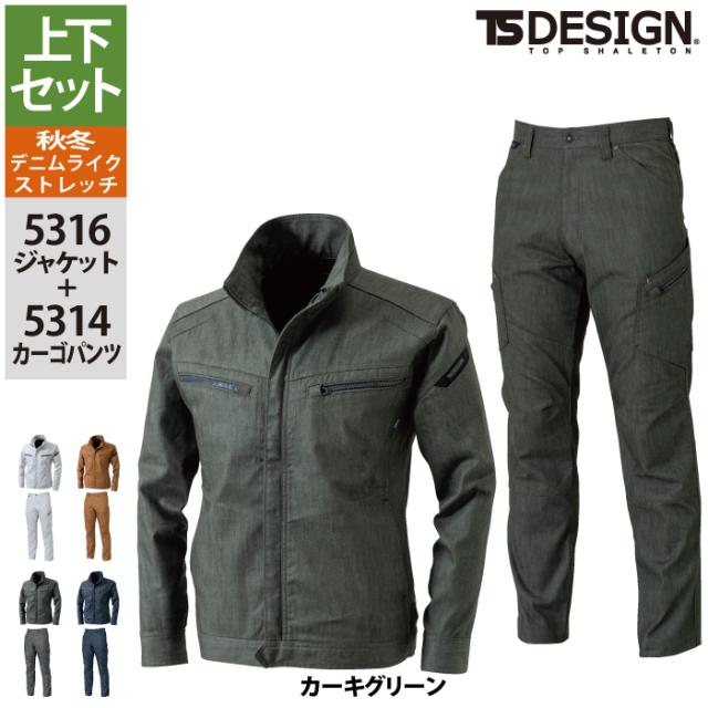 藤和 TSDESIGN 作業服 秋冬用 上下セット 5316 TSLAYEREDTWILLロングスリーブジャケットM-3L と 5314 TSLAYEREDTWILLメンズカーゴパンツ S-3L