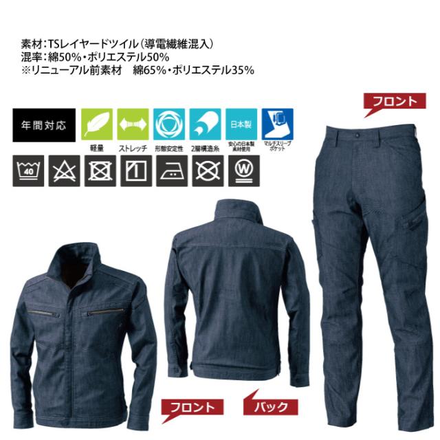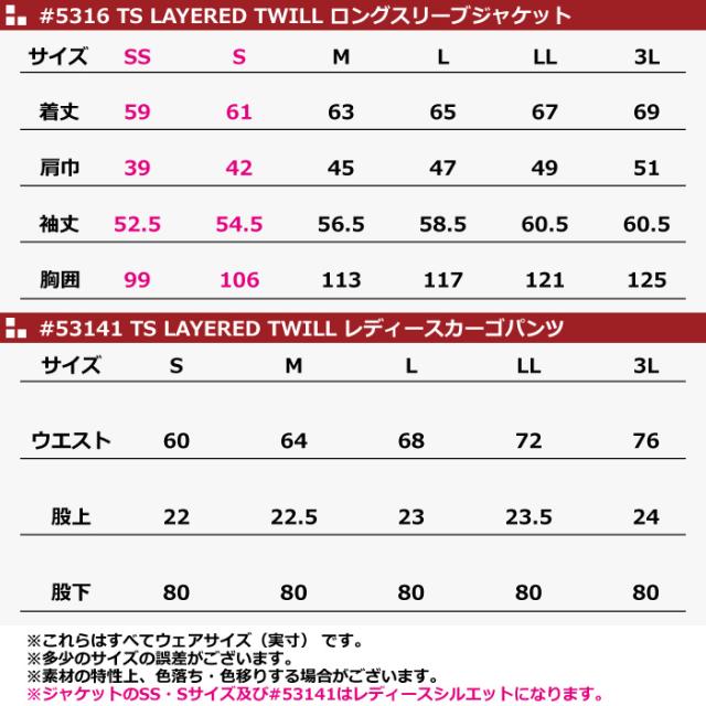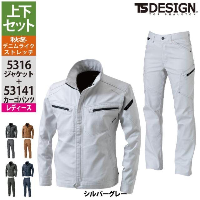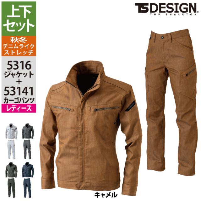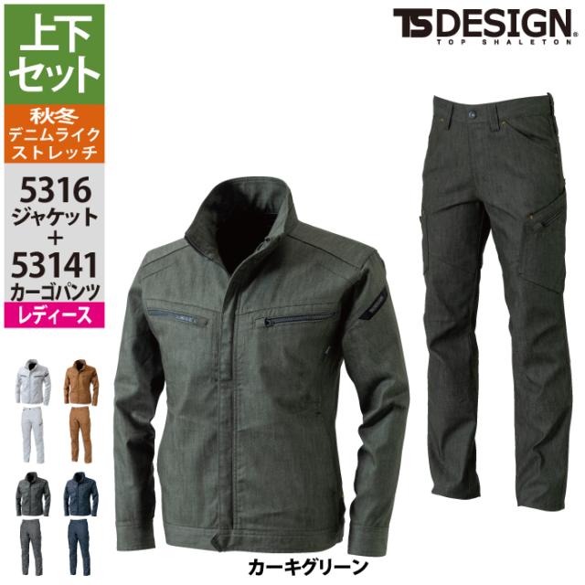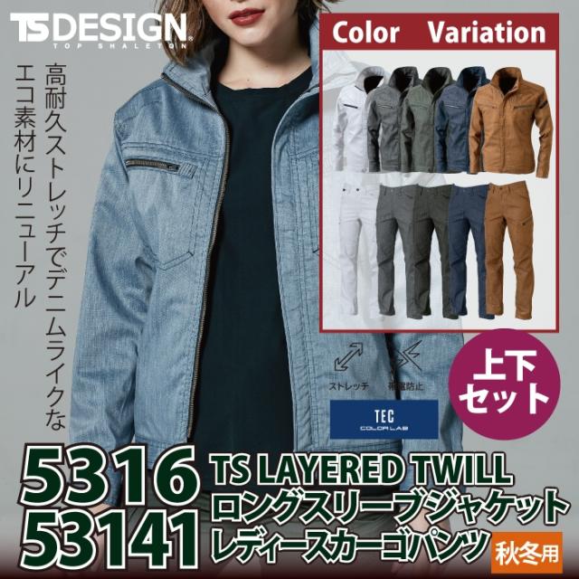 藤和 TSDESIGN 作業服 秋冬用 上下セット 5316 TSLAYEREDTWILLロングスリーブジャケットM-3L と 53141 TSLAYEREDTWILLレディースカーゴパンツ S-3L