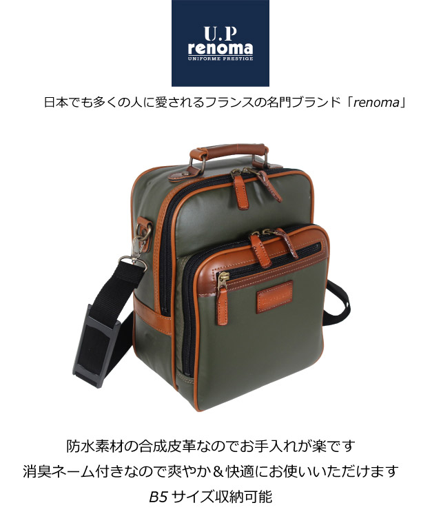 斜めがけバッグ メンズ U.P renoma レノマ タテ型ショルダーバッグ 日本製 豊岡製 20102 B5サイズ 軽量 斜めがけ 斜め掛けバッグ 合皮 バッグ ショルダーバック メンズバッグ パパ 父 ミニショルダー 縦型 ショルダー 男性用 メンズバック 黒 緑 旅行 大人 かっこいい 消臭