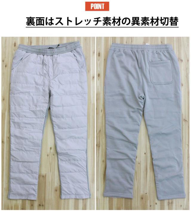 裏地にシャギーフリース素材を使用したダウンパンツ。