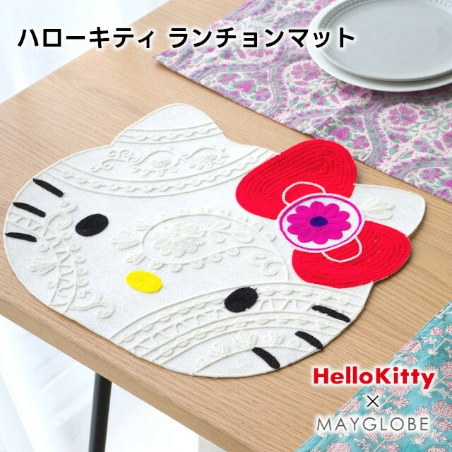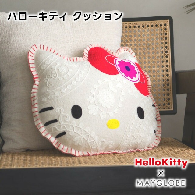 HelloKitty×MAYGLOBE ハローキティ クッション mk23003-01【HelloKitty MAYGLOBE キティちゃん クッション SDGs インテリア 生活雑貨 雑貨 インド ハンドメイド バレンタイン ホワイトデー 母の日 父の日 敬老の日 クリスマス xmas spring】