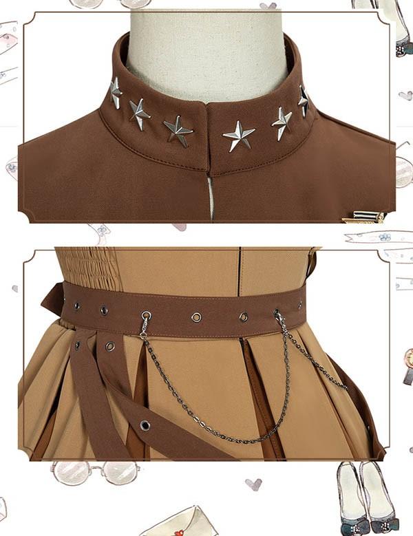 ミニロリ 軍服ロリータ フルセット ワンピース ミリタリーロリィタ 半袖 キャミソール ケープコートブラウン 膝丈 リボン レディース ロリータアウター トップス 小柄 可愛い 着?せ 女の子 袖あり ゴスロリ 厚手 防寒 寒さ対策 柔らかい 軽い着心地 暖かい dd141x1x1zr