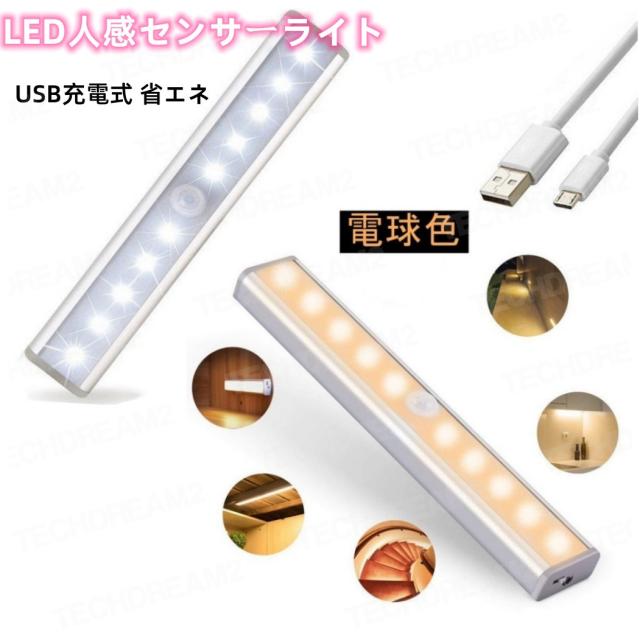 最新改良版 LED人感センサーライト LED人感センサーライト 10LEDランプ 調整可能 USB充電式 省エネ 超寿命 高輝度 両面テープ 磁石マグネット付き 階段 足元灯 台所の手元灯クロゼット 寝室 玄関 洗面所 車庫 物置 廊下