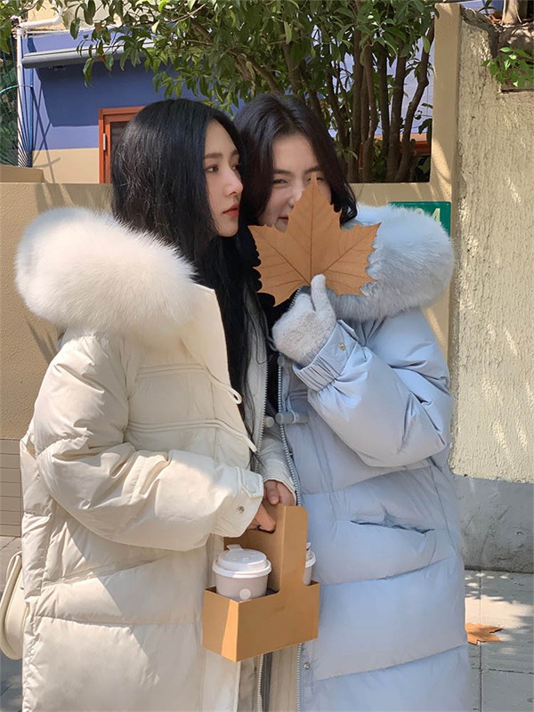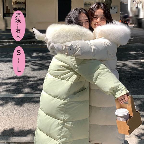姉妹 ダウンジャケット コート レディース 秋冬 防寒 ロングコート 友人 お揃い 服 アウター ベンチコート 冬服 オーバーサイズ ゆったり感 ポケット付き フード付き 撥水 厚手 おしゃれ あったか 韓国風 ホワイト グリーン ブルー ブラック ブラウン dv018z7z7zr