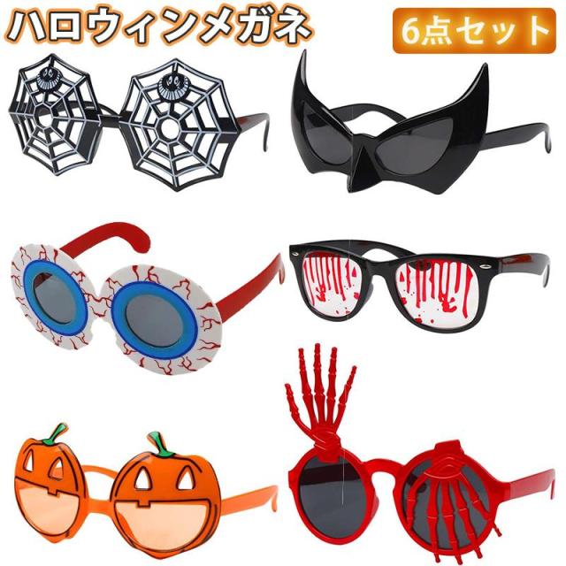 6点セット ハロウィン メガネ 蜘蛛 網 コウモリ パーティー イベント コスプレ用品 コスチューム 変身メガネ 眼鏡 パーティサングラス 小物 ハロウィン飾り