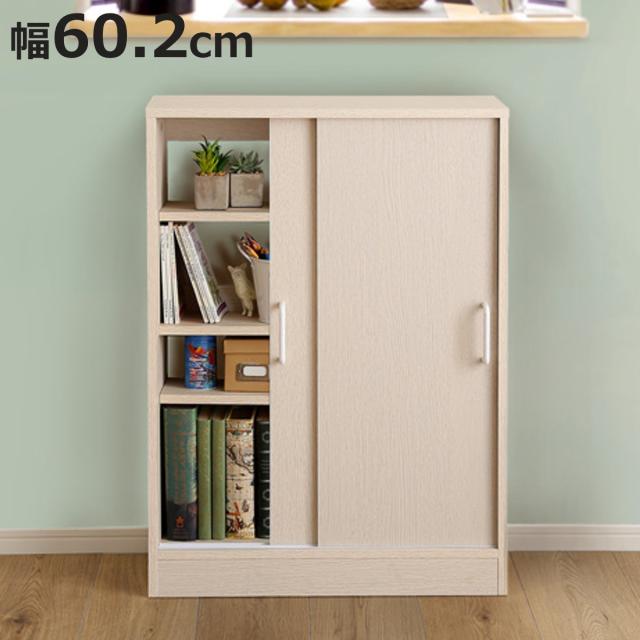 カウンター下収納 幅60.2cm 薄型 引き戸タイプ 北欧調 ( カウンター下 棚 収納 家具 奥行スリム キッチン カウンター ラック キッチン収納 可動棚 窓下 引き戸 ナチュラル )