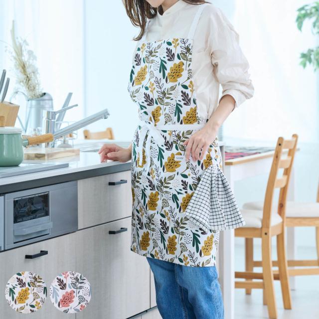 エプロン ルセ vieressa ( 綿100% ポケット付き 花柄 ループ付き ヴィエレッサ キッチンエプロン 台所エプロン 綿100% バッククロス バッククロスエプロン ポケット付き 大人用 レディース 女性用 北欧 かわいい おしゃれ )