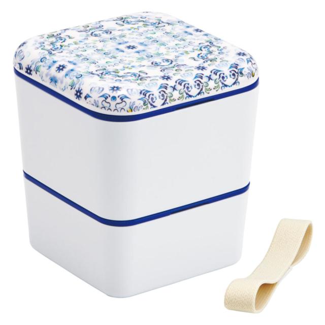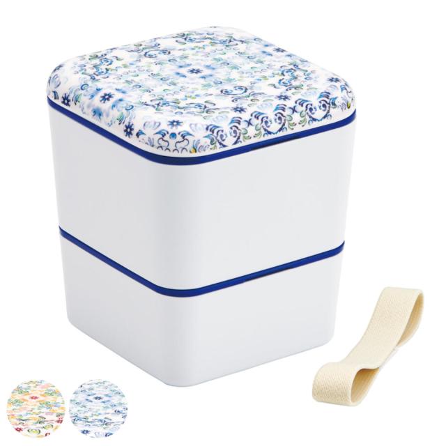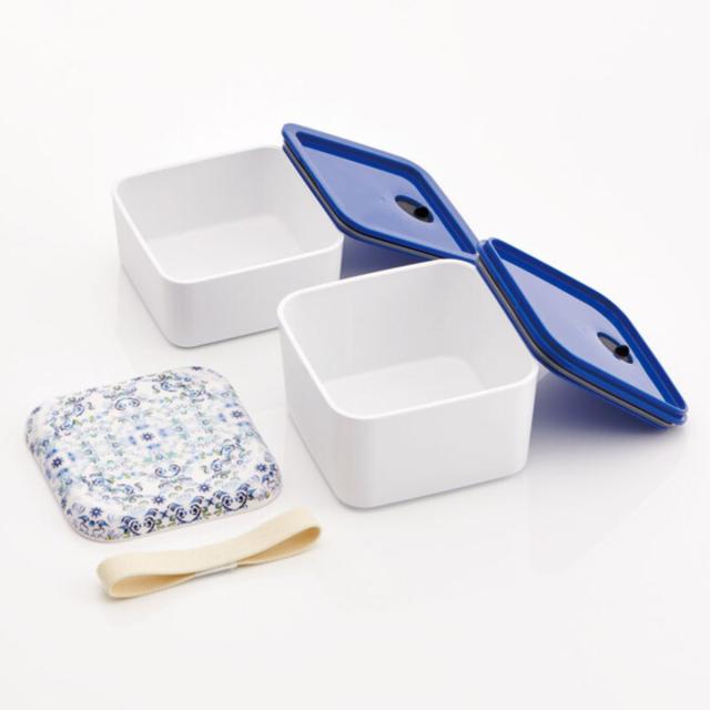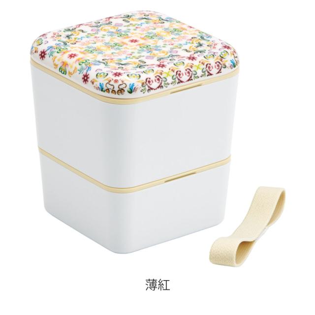 お弁当箱 メラミンランチボックス 角型 2段 600ml 天平文様 ( 弁当箱 ランチボックス レンジ対応 食洗機対応 二段 女子 レンジOK 食洗機OK 弁当 お弁当 ランチベルト付き 入れ子式 女性 )