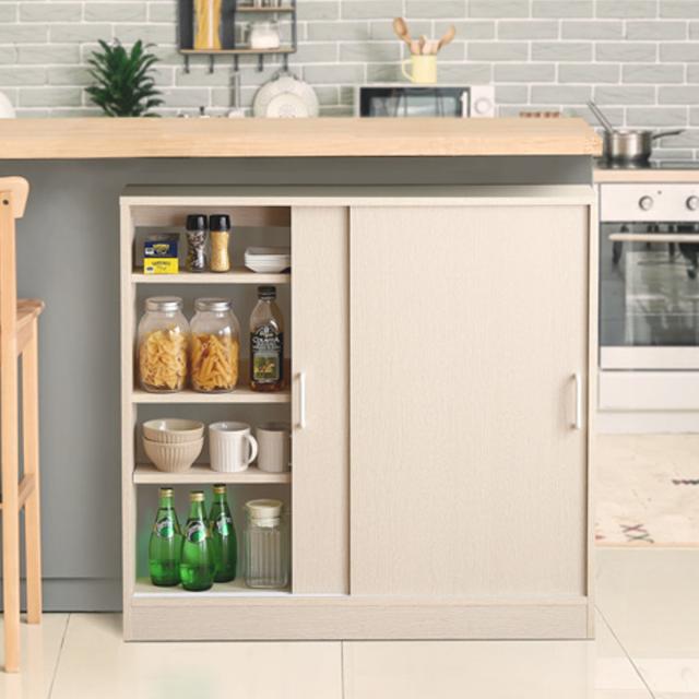 一般的なカウンター下に置ける、高さ85cmの引き戸の収納棚です。カウンター下などの空いたスペースに置くだけで空間を有効利用できます。カウンター下だけでなく、様々な場所でお使いいただけます。全シリーズ高さは同じで、幅と奥行を4サイズからお選びいただけます。