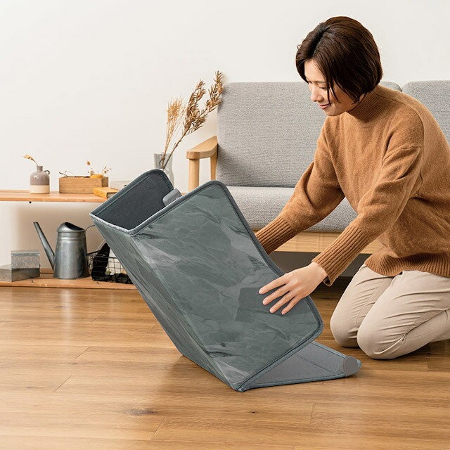 使わない時は折りたたんですっきり収納。しっかり温まるのにこたつより手軽で省エネ!