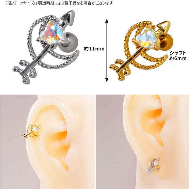 ムーン アロー オーロラ ハート ストレートバーベル 14G 16G 18G 20G サージカルステンレス ジュエル ヘリックス 軟骨 ボディピアス