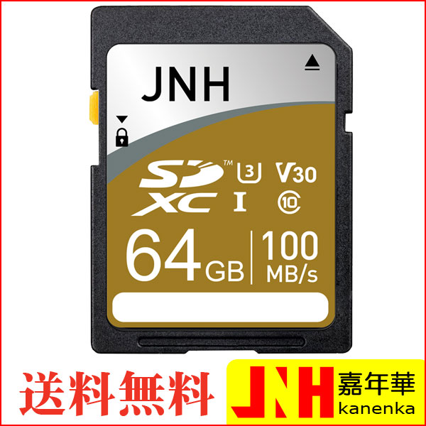 SDカード SDXCカード 64GB JNHブランド 超高速R:100MB/s W:85MB/s Class10 UHS-I U3 V30対応 4K Ultra HD 国内正規品5年保証 送料無料 ポイント消化