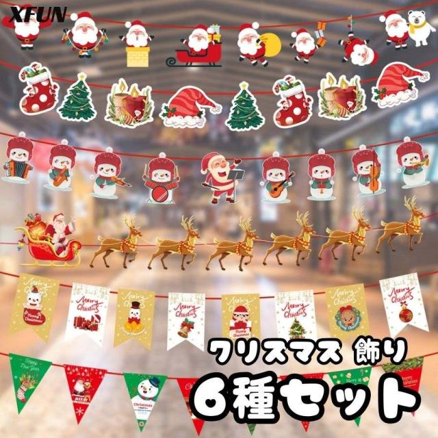 6種セット クリスマス 飾り 3m クリスマスバナー 可愛い 壁飾り 家庭用 保育園 玄関 クリスマス 装飾 サンタクロース Christmas デザイン クリスマス 飾り かわいい サンタクロース トナカイ 壁飾り ペナント