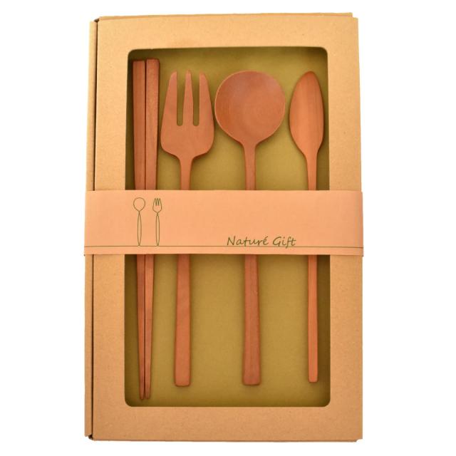 カトラリーセット 4点セット お箸セット 木製 ( カトラリー セット 木製スプーン 木製フォーク 木製ナイフ 箸 木製カトラリー 木 サオの木 ウッド お家カフェ メイン料理 食事 おしゃれ カフェ風 )