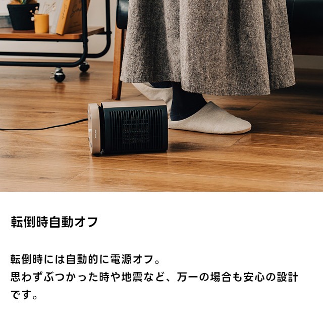 転倒・過熱時は自動で電源オフし、安心してご使用いただけます。