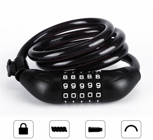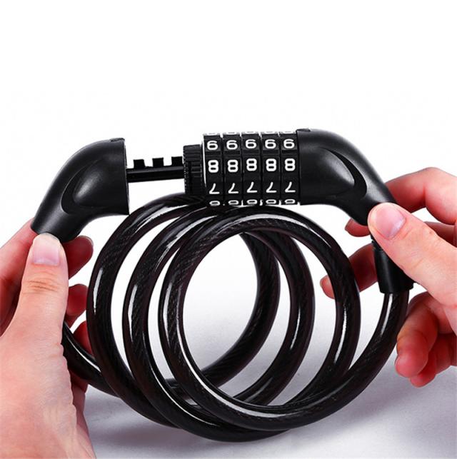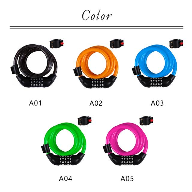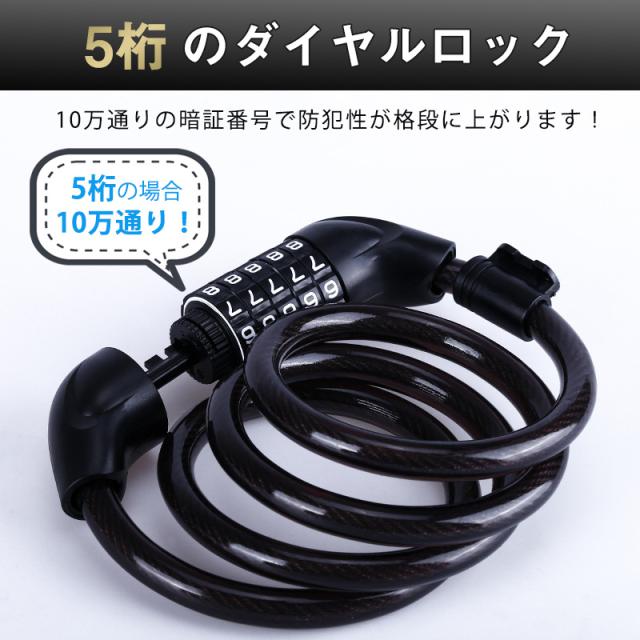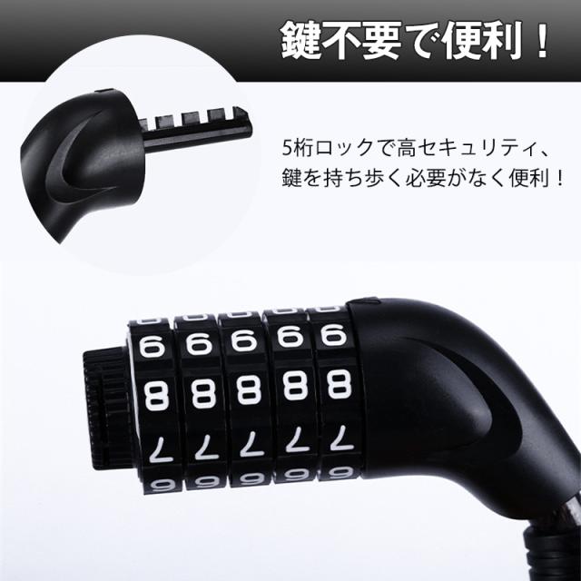 自転車 ワイヤーロック ダイヤル 5桁 盗難防止 ロング 鍵 セキュリティ ブラケット付き バイク 暗証番号 防犯 軽量 コンパク