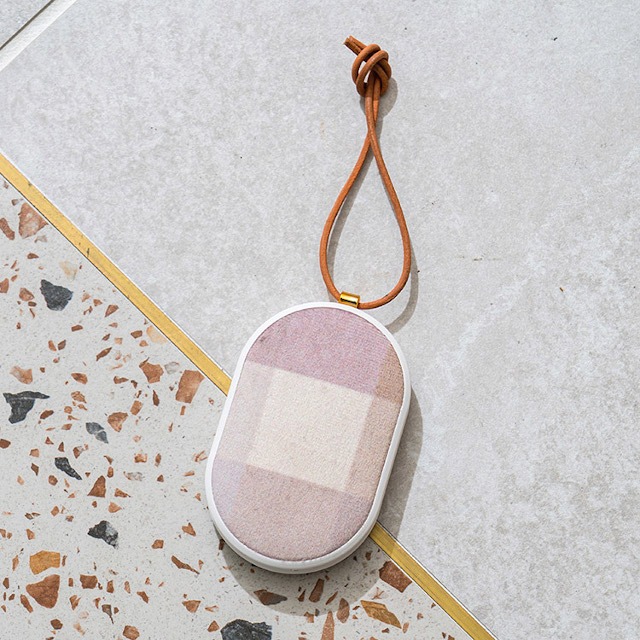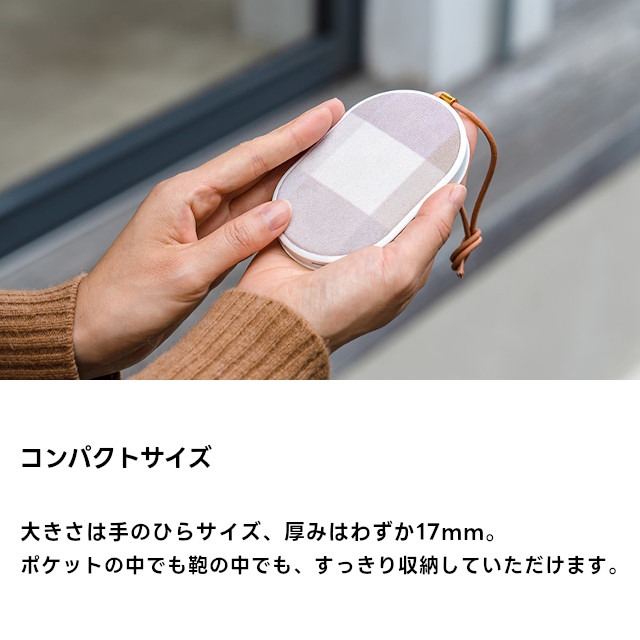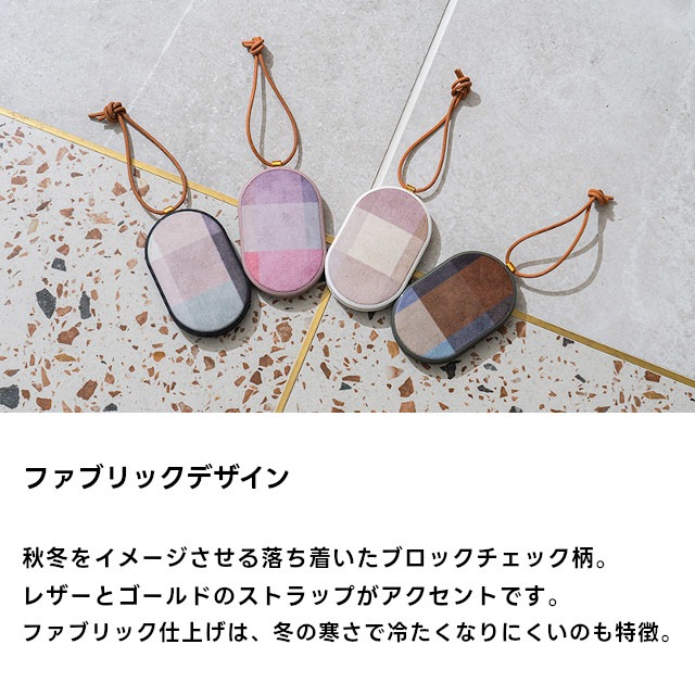 表面のファブリックがかわいい、使い捨てない充電式カイロ。