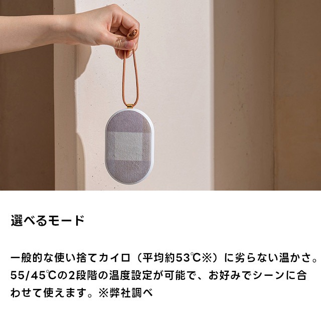 モバイルバッテリー機能、選べる温度設定、誤作動対策など嬉しい機能が満載。