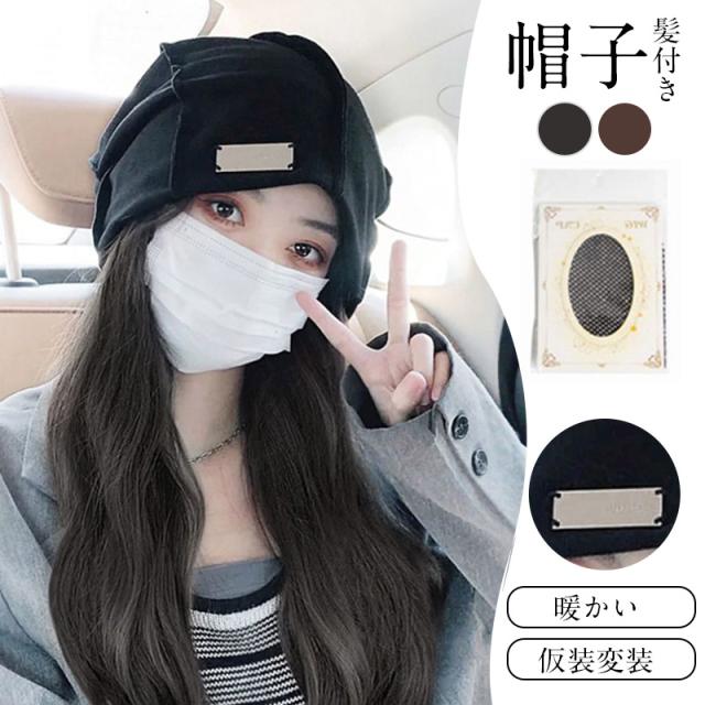 帽子ウィッグ ウィッグ 2way 女性 自然パーマ ロング ニット帽子 医療用帽子 かつら 取り外し可 つけ毛 キャップ 髪付き帽子