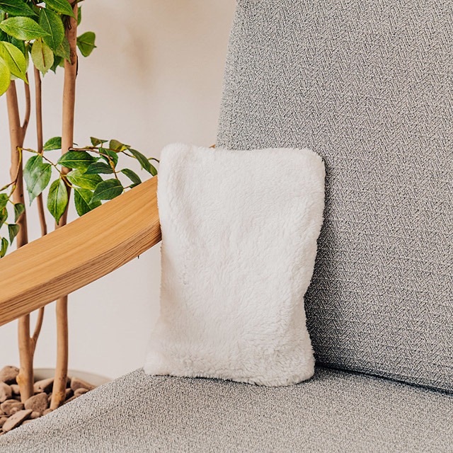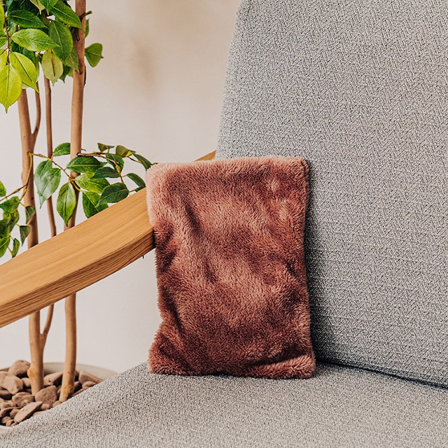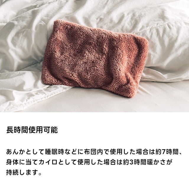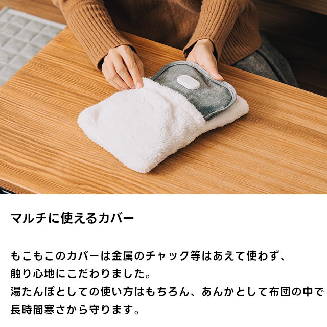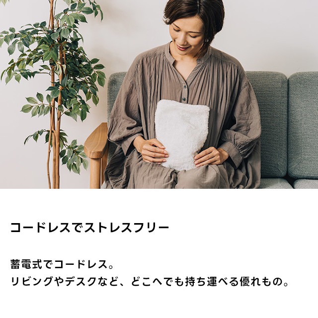 コードレスで温めたい箇所にしっかり当てることができ、もこもこのカバーで見た目もあたたか。