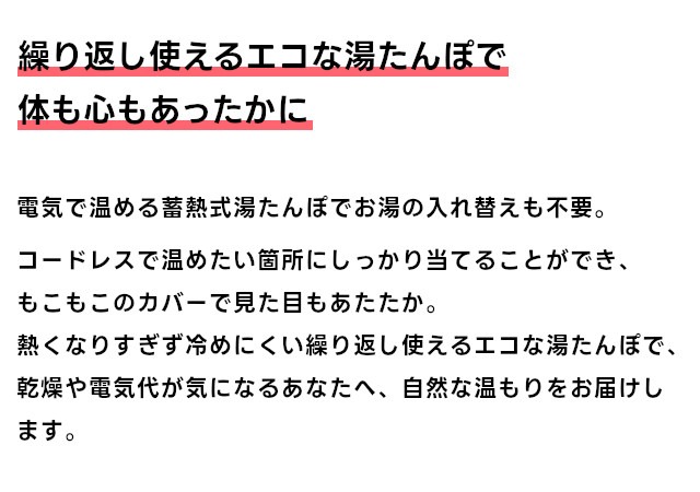 繰り返し使えるエコな湯たんぽで体も心もあったかに |