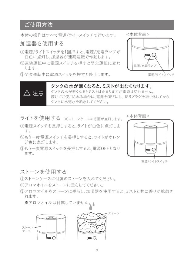 電源をオンにするとミストと一緒に柔らかい香りが立ち上ります。