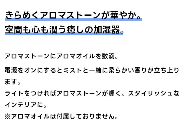 きらめくアロマストーンが華やか。空間も心も潤う癒しの加湿器。 |